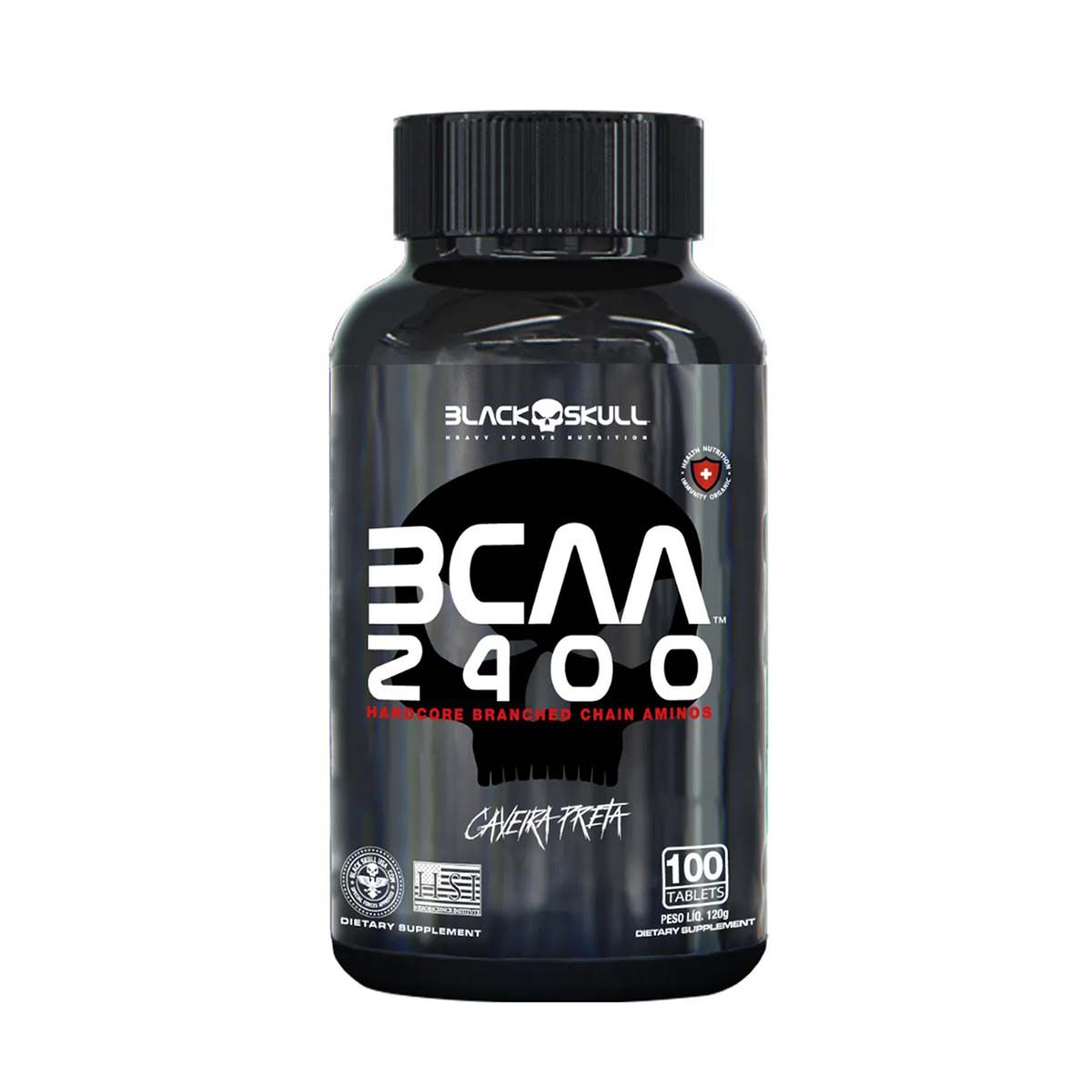 O BCAA 2400 da Black Skull USA traz esse nome pois oferece 2400mg em aminoácidos por cada dose inserida de 4 tabletes. A proporção de aminoácidos é 2:1:1, ou seja, tem 2.400mg de aminoácidos essenciais, sendo: 1200mg de L-Leucina, 600mg de L-Isoleucina e 600mg de L-Valina, considerados os blocos construtores da musculatura, além de diminuir a fadiga na hora dos treinos.
